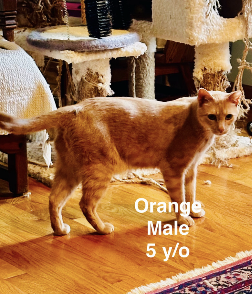 Orange was another emaciated, previously mistreated kitty that Kathy rehabilitated. It took my Mom time, but now he trusts, snuggles, and is overall an awesome cat.